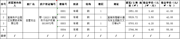 根据经营管理需要,宜城市产业园区发展投资有限公司拟对其拥有的巨星石业资产进行公开招租。现将有关事项公告如下: